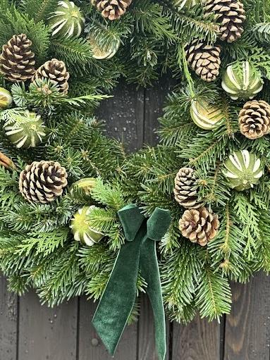 Our Wreaths are inspired by the lake district fells. This design, created on a 12" base is the smallest of our door wreaths it will bring a sense of elegance to any door - no matter what the size.